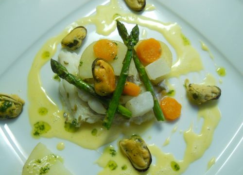 Préparer l'aïoli: écraser les gousses d'ail à l'aide d'un mortier. Ajouter le jaune d'oeuf et du sel. Fouetter et verser lentement de l'huile tout en continuant à fouetter comme pour réaliser une mayonnaise. A consistance voulue, ajouter quelques gouttes de jus de citron.