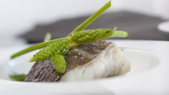 Colorer les morceaux de cabillaud sur une face côté chair et cuisez-les dans un four à 55°C. - 4