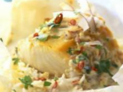 Sur l'un des coté, y déposer le filet de cabillau. Saler et poivrer.