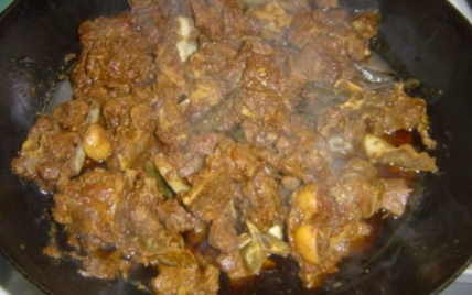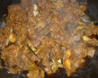 Viande de cabri découpée en petits morceaux, cuisinés en ragoût avec un mélange d'épices (coriandre, cumin, fenugrec, moutarde noire, girofle, muscade, cardamome, caloupilé, poivre...) appelé : massalé.