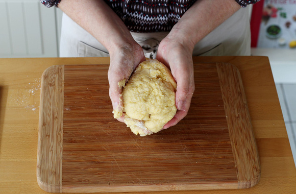 3Commencez à mélanger avec une cuillère puis pétrissez à la main juste assez pour former une boule.
