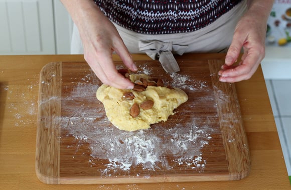 4Ajoutez les amandes et pétrissez légèrement.