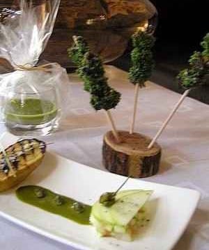 - Ajouter un trait de vinaigre de champagne dans la crème pistachée et dresser harmonieusement !