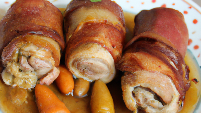 Surveiller la cuisson afin d'arroser avec le jus des cailles bardées aux tranches de lard paysan...