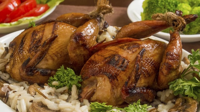 Une recette de cailles rôties et farcies, servies sur un lit de riz sauvage. Un plat idéal à partager autour d'une table de fête.