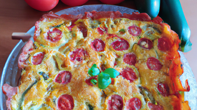 Prechauffer votre four thermostat 7 prendre un moule a cake le tapisser de papier sulfurisé coupe en rondelles les tomates et les mettre au fond du moule ensuite mettre la moitie de la préparation puis les courgettes et terminer par la fin de la préparation. Cuire environ 1 heure au trois quarts de la cuisson mettre un papier alu sur le dessus du cake pour le faire dorer quant le cake est cuit le laisser refroidir puis le mettre au frigo ne le déguster que le lendemain légèrement frais.