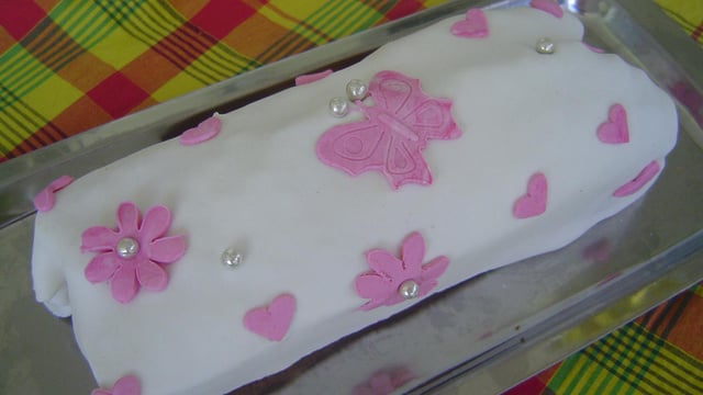 Un cake à la mangue décoré en l'honneur de ma maman.