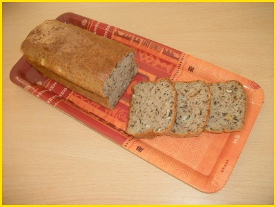 Un cake avec un bon goût prononcé grâce à l'alliance du chèvre avec noix et farine de sarrasin...