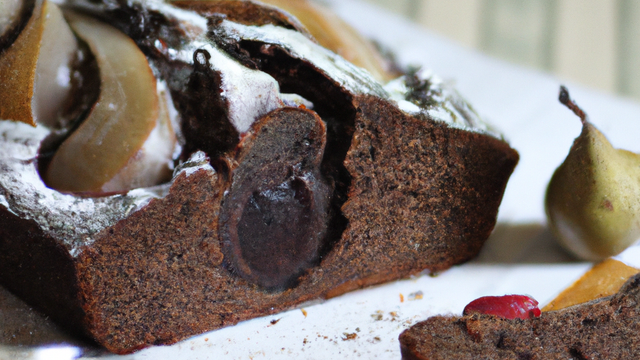 Ecraser le chocolat en pépites. Mélanger les oeufs, le sucre, la farine, la levure, la poudre d'amandes et le beurre fondu. Couper les poires en petits dés et mélanger le tout.