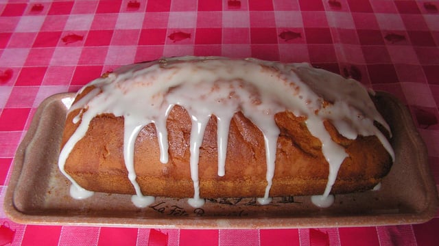 Tamiser le sucre glace, le lisser avec le jus de citron et glacer généreusement le cake.