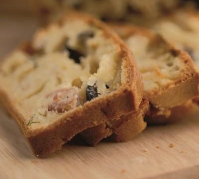 Préchauffer le four à 180°C (th.6). Tailler le jambon cru en fines lanières. Emincer finement les olives. Couper le fromage en cubes. Tamiser la farine. Faire juste fondre le beurre. Dans un saladier, casser et déposer les œufs,