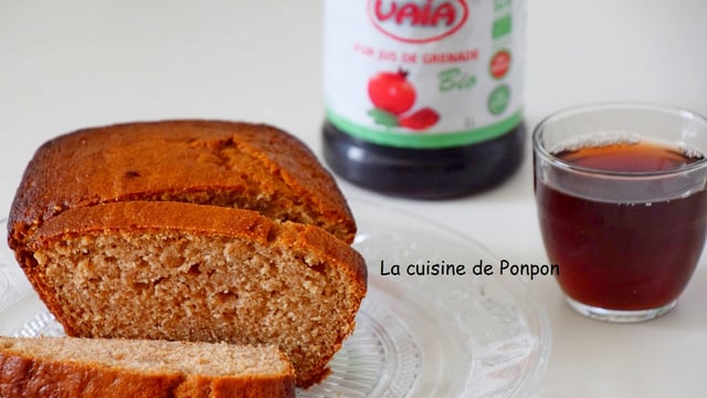 J'ai reçu il y a quelques temps du jus de grenade. Ce jus, 100% grenage est excellent à boire, rien à voire avec la "grenadine"!. Je m'en sers un petit verre tous les matins. Mais il fallait que je trouve une recette afin de l'utiliser d'une autre manière. Et voici un cake bien moelleux au jus de grenade: