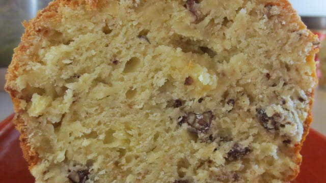 Beurrer un moule à cake (ou disposer du papier cuisson à l'intérieur) et enfourner votre cake en baissant à 160°c pendant 1h.