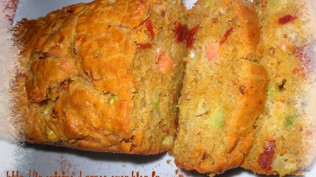 Un cake que vous pouvez accompagner d'une petite salade de mesclun ou/et de quelques tomates confites..idéal en entrée avec une petite salade, à l'apéro ou pour un pique nique...