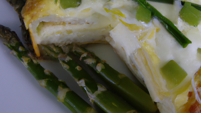Couper les asperges en petits tronçons, faire de même avec la mozzarella.