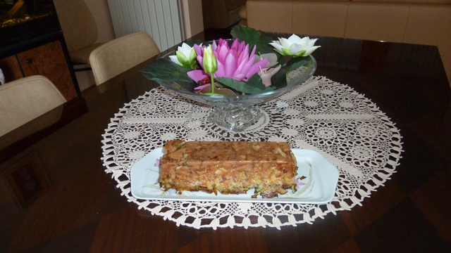 Ou froid en entrée découpé en tranche avec une sauce genre mayonnaise