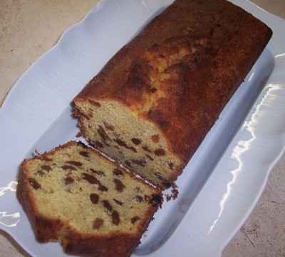 Dans un bol, mettez de raisins secs avec de rhum. Laissez reposer. Dans une terrine, mélangez de beurre mou avec de sucre et sucre vanillé. Ajoutez un à un, les oeufs. Incorporez de farine mélangée à 1 sachet de levure chimique. Puis, ajoutez à ce mélange un zeste de citron et d'orange, ainsi que les raisins que vous aurez farinés. Mélangez délicatement. Versez cette préparation dans un moule à cake beurré et glissez-le au four préchauffé à 180 °C durant 40 min.