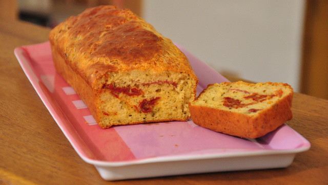 Couper les tomates séchées et les deux tranches de jambon en morceau, les ajouter à la préparation avec le gruyère et les herbes de Provence. Mélanger à nouveau. Verser le tout dans un moule anti-adhésif ou à défaut dans un moule beurré. Placer au four pendant 45 minutes.