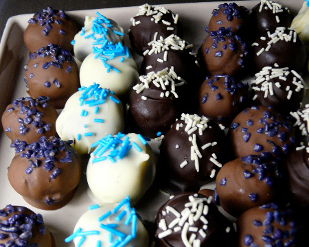 Ces petits cake balls sont réalisés à partir de cake au chocolat écrasé avec du Philadelphia et recouvert de différents chocolats . Ils sont parfaits pour des anniversaires ou pour accompagner un café