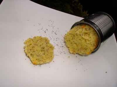 on peut utiliser comme moi des boites de conserve comme moule pour avoir des cakes cylindriques ou un moule traditionnel, en tenir compte pour le temps de cuisson!