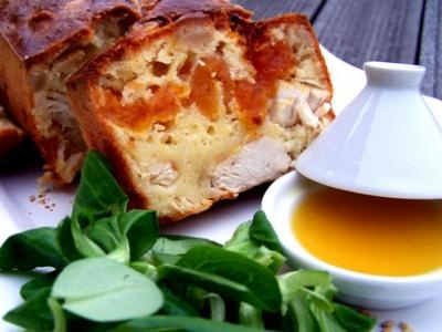 Ajouter à la base du cake les amandes, les dés de poulet et les morceaux d'abricots.