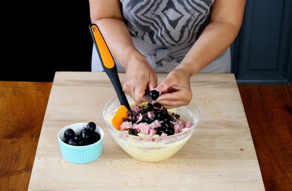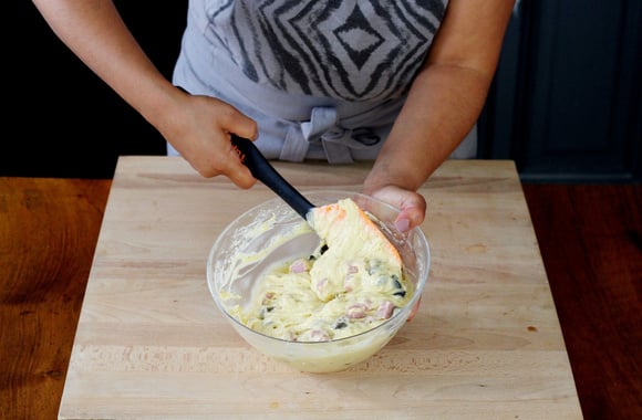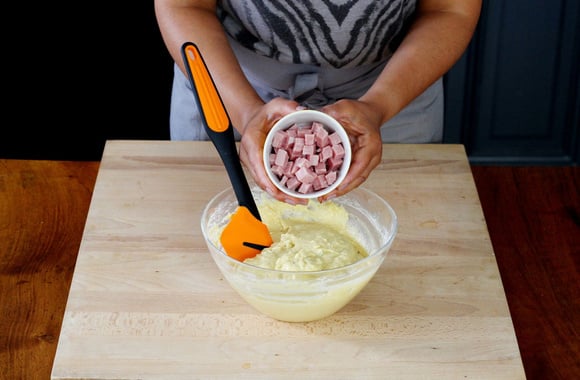 6Ajoutez les dés de jambon.