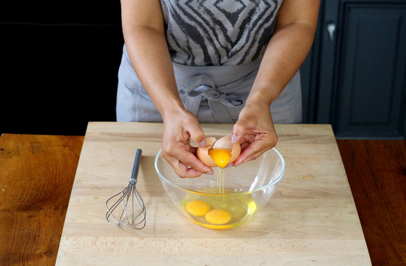 Dans un saladier, cassez les oeufs entiers.