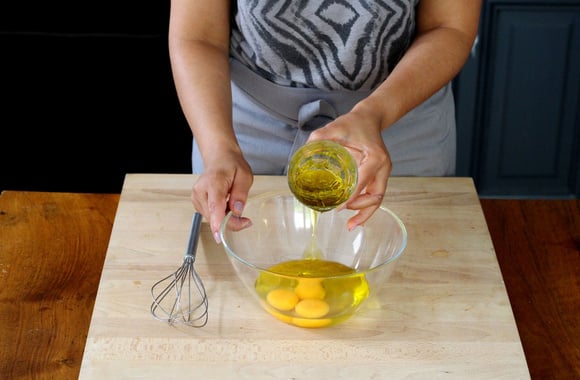 2Ajoutez 1 pot à yaourt d'huile d'olive puis poivrez.