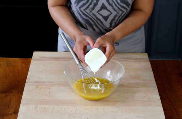 Pour cette recette, le pot de yaourt sert de verre mesureur.