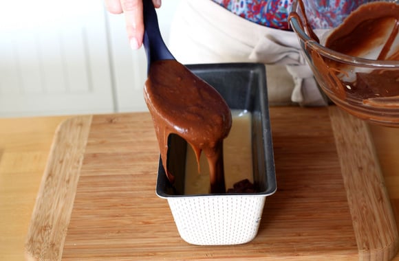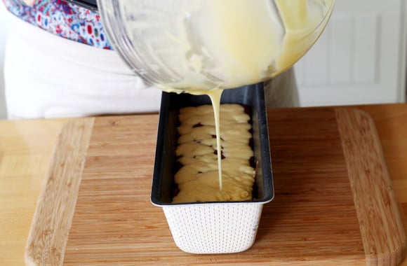 Nul besoin de touiller la pâte. C'est grâce à la levure et à la forme du moule à cake que le coté marbré va se créer.