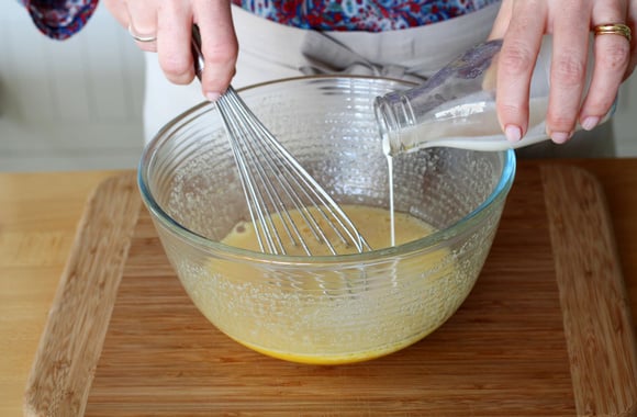 Dans un bol, fouettez les oeufs et le sucre.
