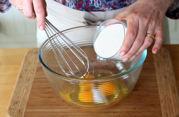 2Ajoutez la crème et fouettez.