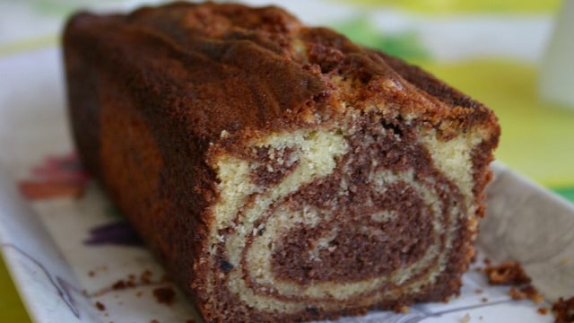 Versez les 2 pâtes dans un moule à cake et faites cuire environ 40 minutes.