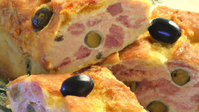 Mélangez la farine et la levure. Ajoutez les oeufs puis les liquides en liant bien à chaque fois. Ajoutez le fromage. Terminez avec les olives coupées en deux et les dés d'épaule.