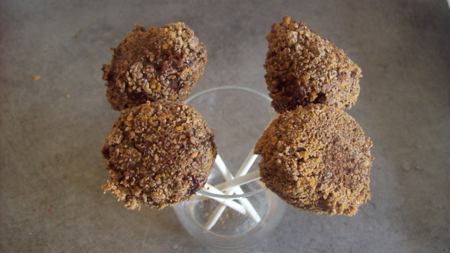 Mixer les bonbons et roulez les cakes pop dedans, mettre un bâton et réservez.