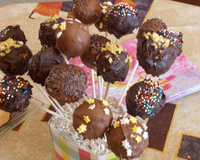 A l'aide de 2 fourchettes, tremper les boulettes une par une dans le glaçage chocolat en les enrobant bien. Placer sur une grille et mettre les décorations. Entreposer 1h minimum au réfrigérateur.