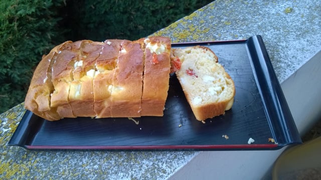 Un cake salé décliné cette fois avec de la feta et des petites tomates cerises, une alliance parfaite, bien crémeuse...