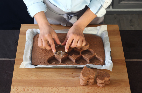 Détaillez la pâte au cacao réfroidie avec un emporte-pièce en forme de coeur.
