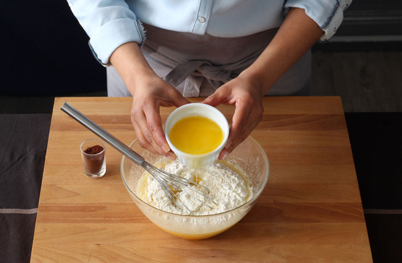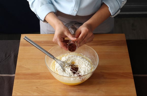 3Mélangez avec le fouet, puis incorporez le cacao.