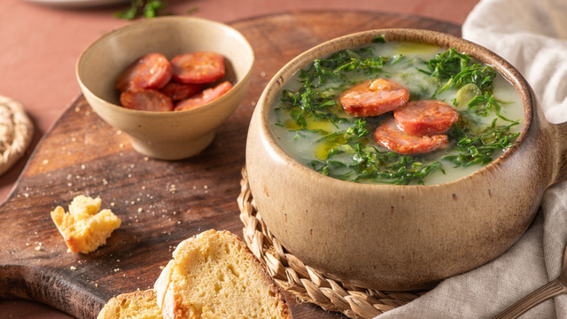 Originaire du Portugal, cette soupe est un délice simple. Pour réussir le caldo verde vous allez avoir besoin de quelques feuilles coupées et nettoyées de chou kale. Après avoir fait revenir des rondelles de pommes de terre avec de l'oignon de l'ail, vous allez mixer le tout. Puis, vous allez parsemer votre soupe avec quelques rondelles de chorizo. Juste avant de vous régaler avec un bol de Caldo verde, les locaux recommandent de servir des tranches de pain de campagne. Tout comme les croûtons nature ou à l'ail, vous allez les tremper dans ce mélange de choux parfumé. C'est tellement bon que vous n'allez pas en laisser la moindre goutte dans les bols !