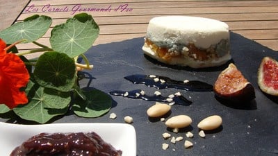 Couper les abricots secs en dés et les répartir sur le roquefort, ajouter les amandes hachées. recouvrir d'une nouvelle couche de mascarpone. Lisser à la spatule. Placer au congélateur au moins 1 heure, cela facilitera le démoulage. - 2