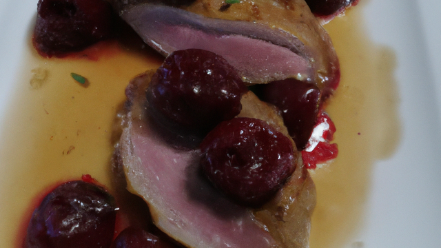 - Flamber, vider et faire légerement colorer le canard pendant 5 min, avec 50 g de beurre dans votre sansor retirer le beurre cuit et ajouter les 50 g restant mouiller avec le jus de la boite de cerise le cherry et 1/2 verre d'eauAssaisonner de sel et de poivre fermer et faire cuire 31 min à partir du chuchotement de l'appareil au terme de la cuisson retirer le canard et le maintenir au chaud sur un plat de service verser les cerices dans votre sensorFaire chauffer 4 min et arrose le canard de sauce.