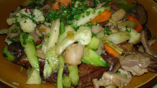 Canard et sautés de légumes