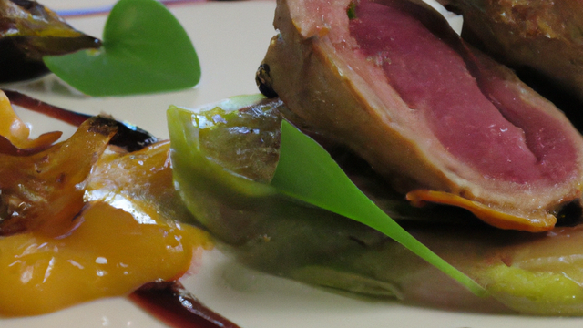 Magret de canard aux figues, avec salade de tomates basilic au miel et vinaigre balsamique et ses pommes de terre chips.