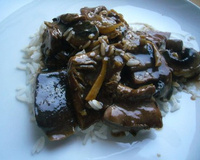 - 4Rincez la poêle (ou le wok), ajoutez de l'huile propre, et mettez-y à dorer l'ail et le gingembre, en les remuant continuellement pour éviter qu'ils ne brûlent.Ajoutez ensuite les morceaux de canard, les champignons frais coupés en deux, les champignons réhydratés également coupés en deux, l'eau, le sucre, le poivre, l'huile de sésame, la sauce hoisin, la sauce de soja. Laissez mijoter à découvert cinq à dix minutes, le temps que la sauce réduise un peu.Ajoutez alors la farine de tapioca (ou de fécule de pomme de terre) délayée dans une cuillérée d'eau froide.La sauce va épaissir, remuez continuellement.Quand la sauce est bien épaisse, ajoutez le vinaigre de riz et les ciboules. Servez avec du riz blanc.