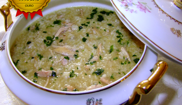 Une soupe dont les brésiliens aiment beaucoup, à base de poule. En principe, elle est d'origine chinoise et a été apporté au Brésil par les portugais. Une soupe qui n'a pas séduit seulement les brésiliens et les portugais, mais aussi le président Roosevelt lors d'un séjour au Brésil et le duc de Wellington, à Portugal. En Chine, elle était utilisée pour que les gens puissent récupérer après les grandes fêtes. A Portugal, pour les femmes enceintes. Au Brésil, la "puissance" de la soupe est connue surtout pour donner des forces après les 4 jours de Carnaval.