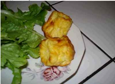 Mélanger un oeuf entier et un jaune. Saler, poivrer. Rajouter la farine, mélanger. Ajouter le fromage et bien mélanger jusqu'à obtenir une crème homogène. Incorporer petit à petit le lait chaud en mélangeant. Répartir dans 10 moules à cannelé préalablement beurrés au pinceau (remplir au 3/4). Mettre au four 50 min.