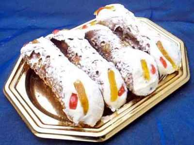 Enlevez la pâte des cylindres, farcissez les croûtes avec la crème de ricotta (voir recette ci dessus), saupoudrez de sucre glace et décorez d'écorces d'orange ou cerises confites.
