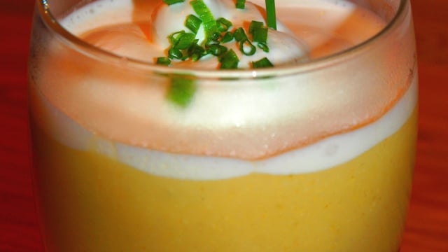 Variante mousseuse : Sans la fouetter, versez la crème dans la cocotte en fin de cuisson et portez à ébullition. Mixez la préparation en plusieurs fois au mixeur plongeant pour obtenir une mousse assez épaisse.