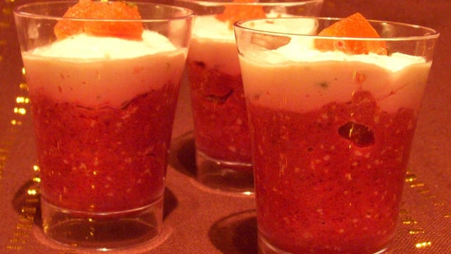 Un velouté de betterave surmontée d'une mousse de chèvre frais : une verrine salée toute en fraîcheur !
